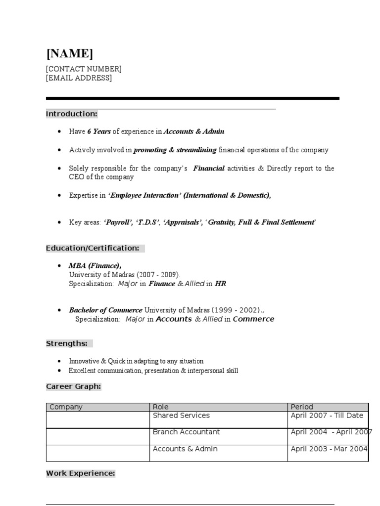 Keep your resume headline between 1 and 2 lines mba resume format for freshers. I understand that my data will be held for as long as i am registered with the site and i will continue to receive such communications until i amend my user profile.*